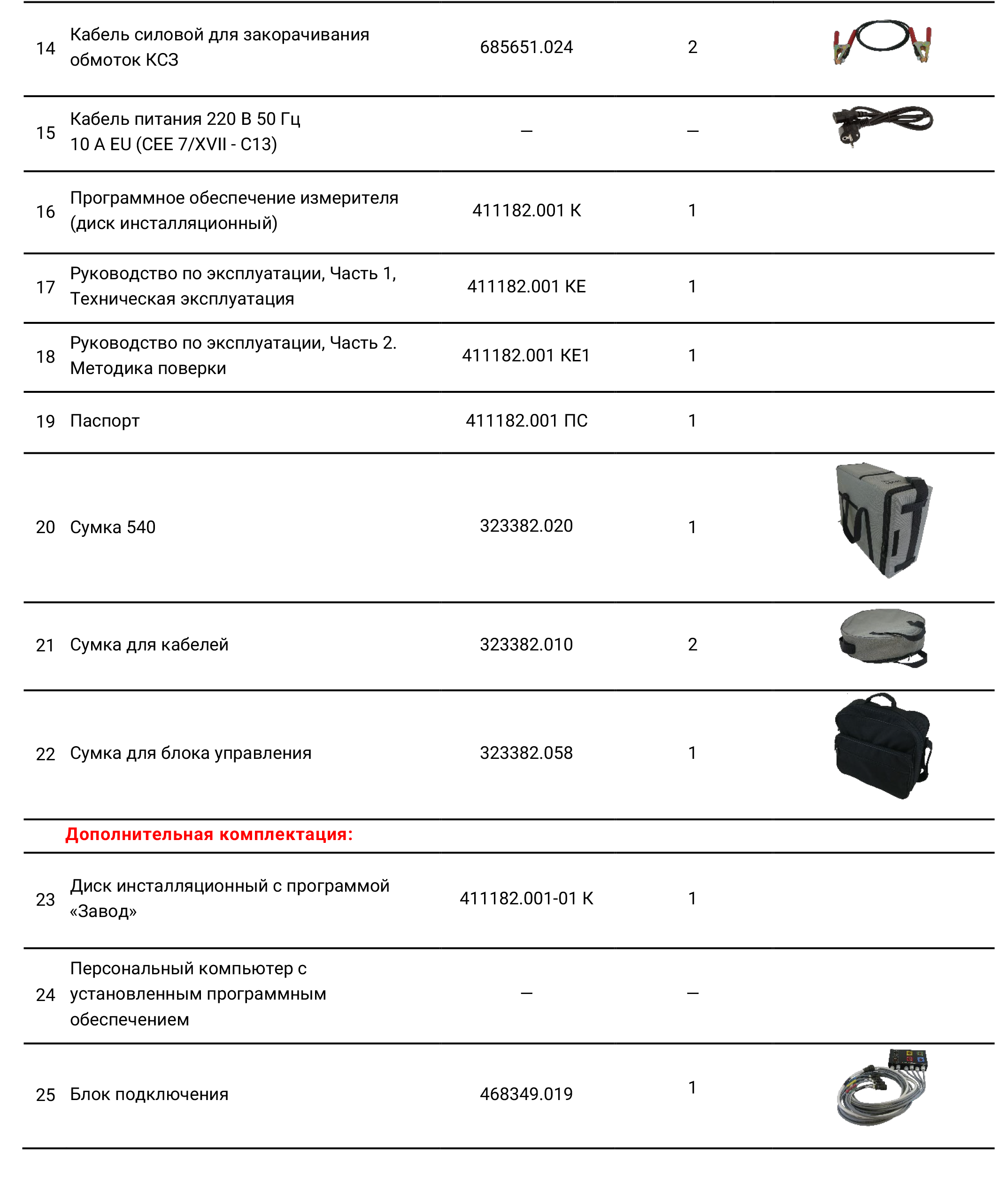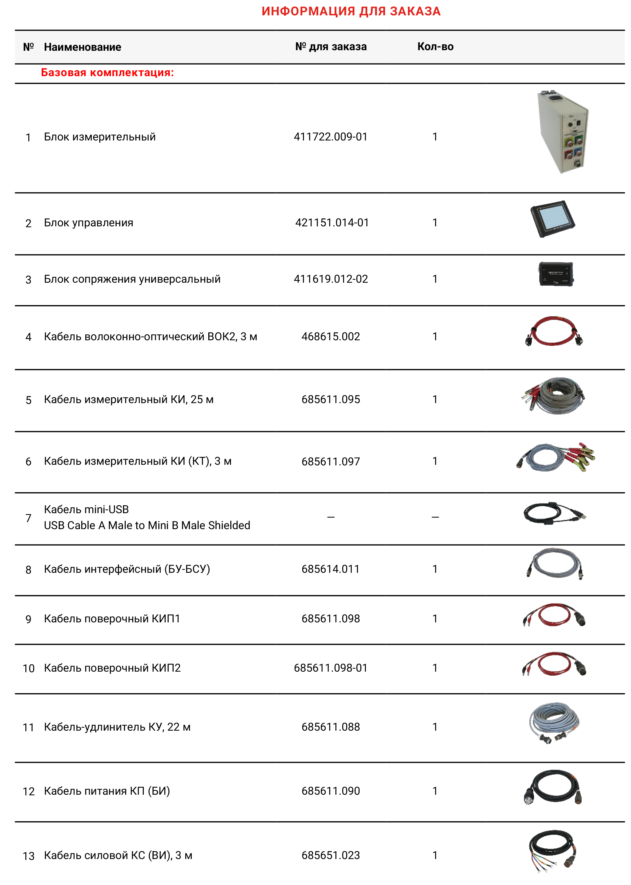 | Масса блока измерительного / комплекта кабелей | не более 16,5 кг / 25 кг |